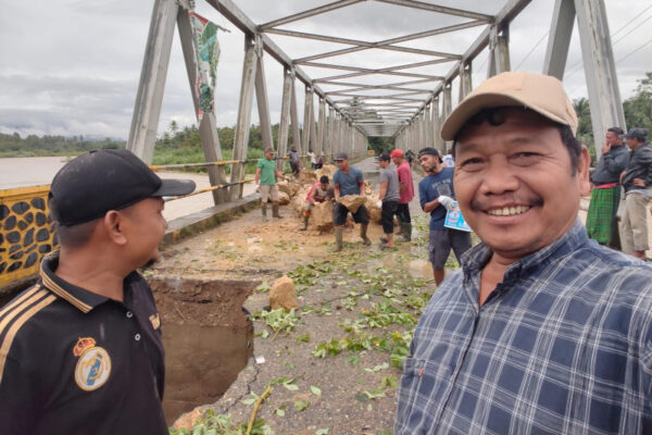 Kades, Babinsa dan ASN Kantor Kecamatan Hutabargot Gotong Royong Perbaiki Jembatan Pasca Banjir